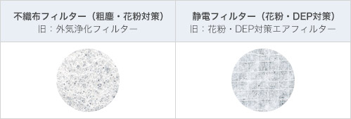 各フィルターの違いをわかりやすくするために、室内用製品に採用しているフィルターの名称を以下の通り変更致しました。